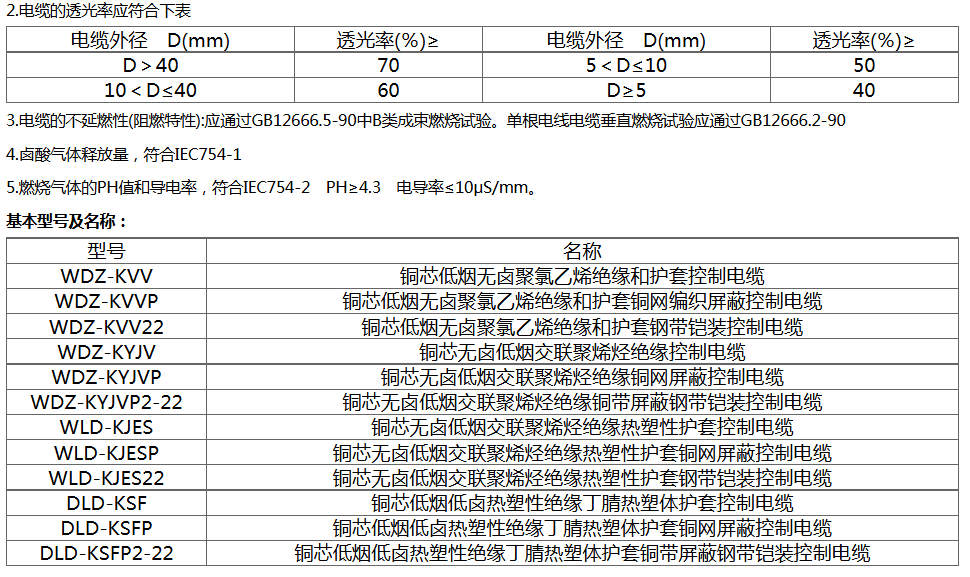 产品名称:低烟低卤、低烟无卤阻燃型交联聚烯烃绝缘控制电缆 产品特点及用途
